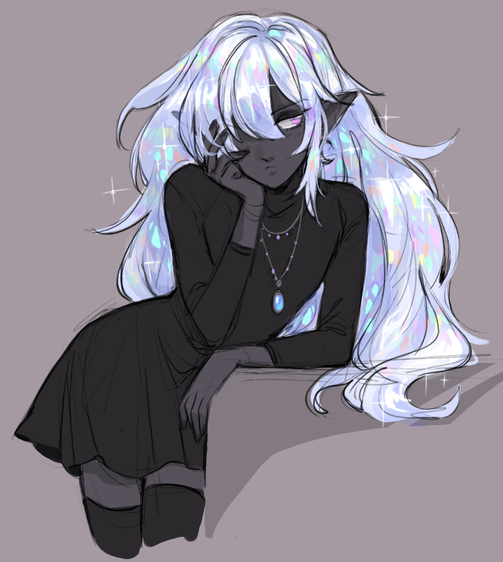 Jokul: the one i do rly love to make art of because he is probably both my most stylish and most popular oc on social media. He's very fun to draw for lots of reasons but the big one is ofc his opal hair haha. despite hi stylish looks and fashionable drawings i have of him, he is actually a gremlin with very little manners. He grew up stealing from people and duping travelling missionaries to the church he lived in. he is a very good liar (usually) and typically will try to get one over on many people either for fun or to get something he wants or needs.